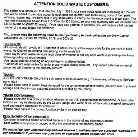 ATTENTION: COUNTY SOLID WASTE CUSTOMERS: