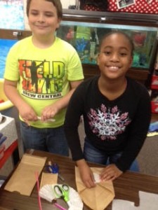 Drew Central fourth graders eagerly took on the Christmas STEM Challenge “Candy Cane Calamity”. STEM stands for science, technology, engineering, and math. Students worked in teams and designed and built a way to safely “mail” two candy canes in one paper bag package without breakage. Students were required to follow criteria and constraints. Once the packages were complete, students weighed them in grams and used a grams to ounces converter website. Next, they used Chromebooks and researched FedEx, USPS, etc. rates to mail their packages to Santa at the North Pole aka Geographic North Pole or Terrestrial North Pole. (more…)