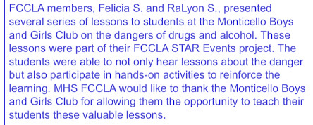Six members of Monticello High School FCCLA chapter competed yesterday, February 21 at the FCCLA State STAR Events Competition in Conway. (more…)