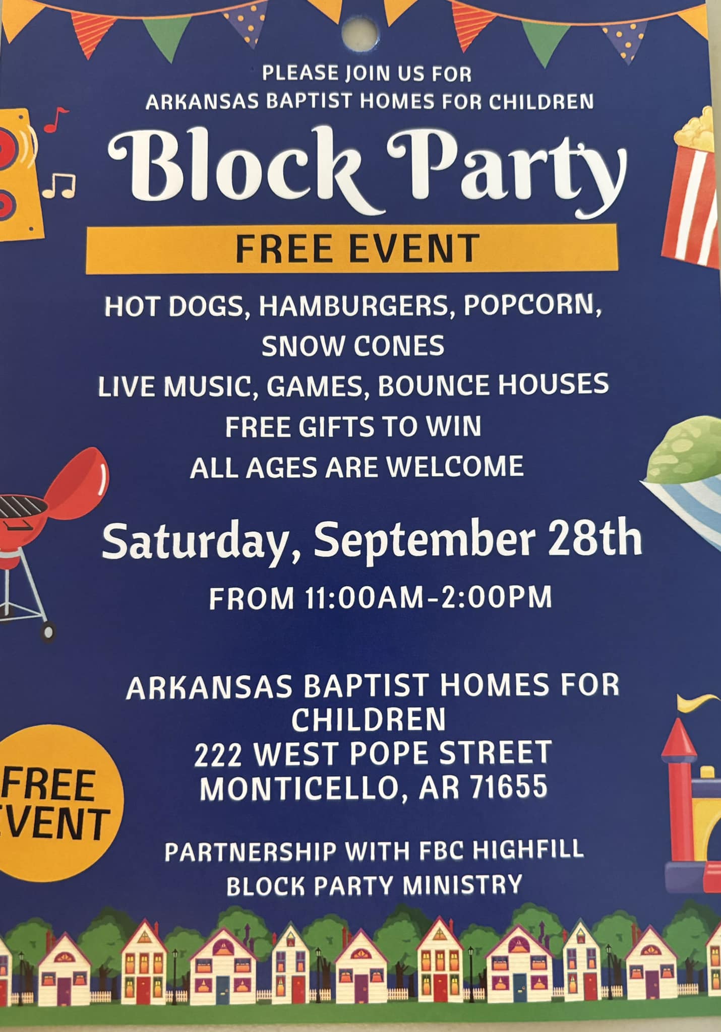 Block Party At Arkansas Baptist Homes For Children, Saturday September 28th