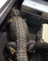 Another alligator, estimated to be 9 feet in length, was captured by AG&F officers in May, while trying to cross HWY 165, south of Dermott, in the Lake Wallace area of Drew County. Drew County Sheriff’s deputies were also present.