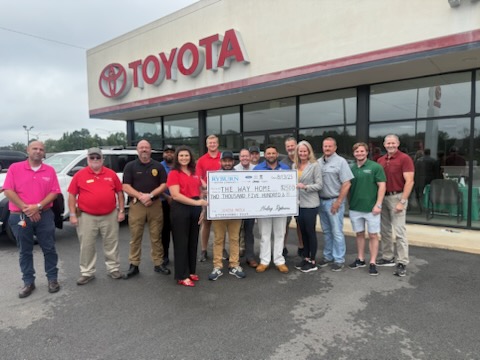 Halley Ryburn-Powell of Ryburn Motor Company, presented The Way Home a $2,500 donation. The donation was in addition to $2,500 that was donated by Toyota Corporation for a total of $5,000.The Way Home is a non-profit Christian discipleship and residential care home for qualifying men who struggle with life-controlling addiction such as drugs and alcohol. The mission is to provide a clean, safe and drug free home where men recovering from addiction can learn biblical principles that will teach them how to live free and begin the healing process in their lives, their families and their communities.