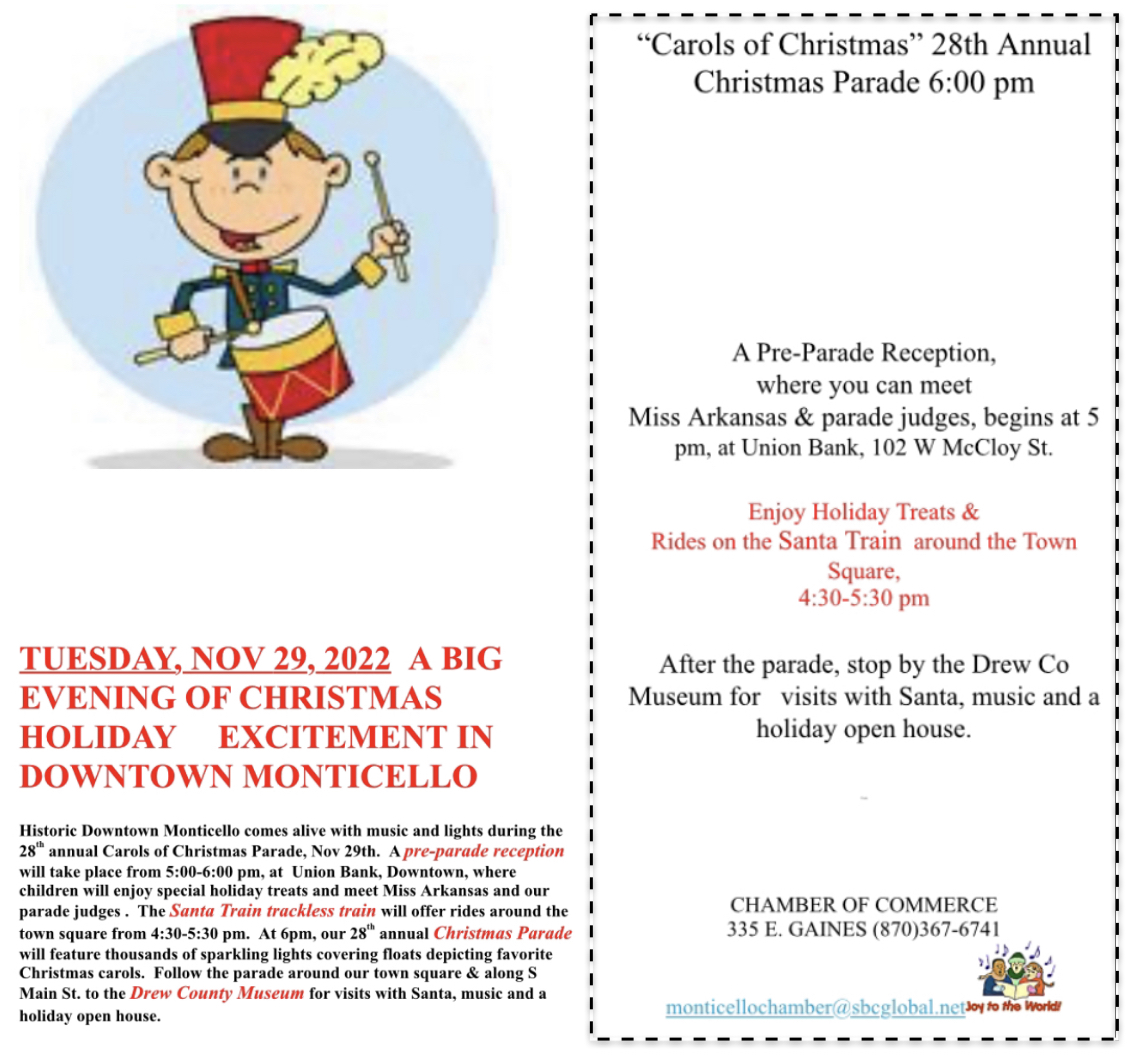 Posted in Chamber of Commerce, Christmas | Comments Off on Annual Carols of Christmas Parade, Tonight, 6 PM