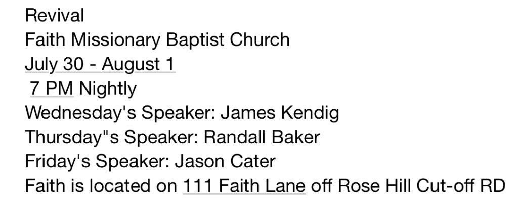 Posted in Church | Comments Off on Pleasant Springs Baptist Church Home Coming, May 18th