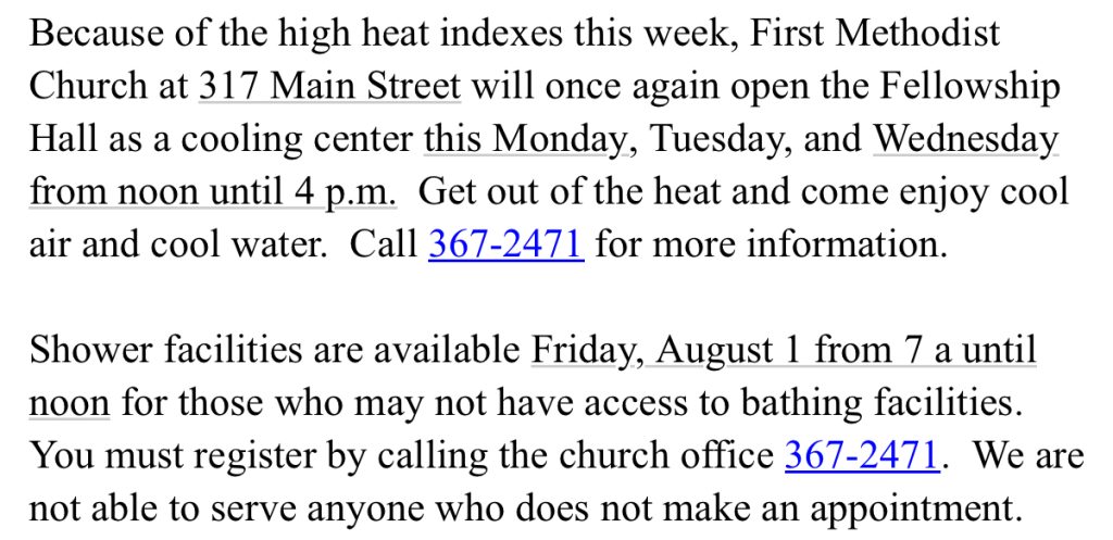 Posted in Church , Site | Comments Off on FUMC Opening Cooling Center & Showers