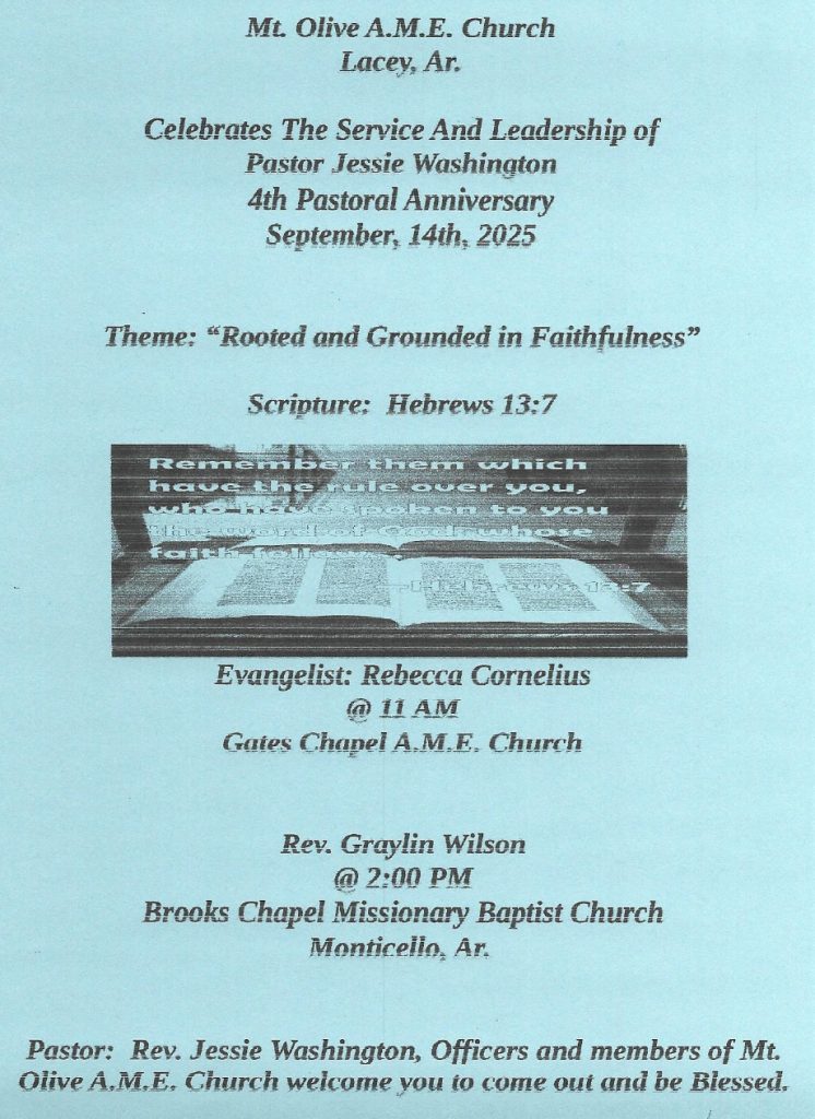 September 20th at Shady Grove Missionary Baptist Church in Monticello: Doors open at 11:30 for check-in. The event is 12:00-2:00