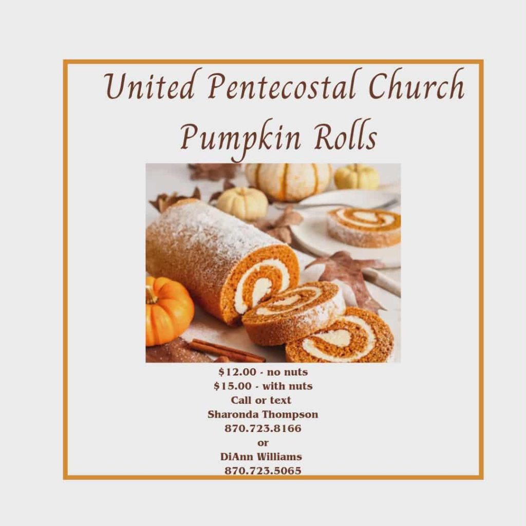 Posted in Church | Comments Off on Pumpkin Rolls Fundraiser, United Pentecostal Church