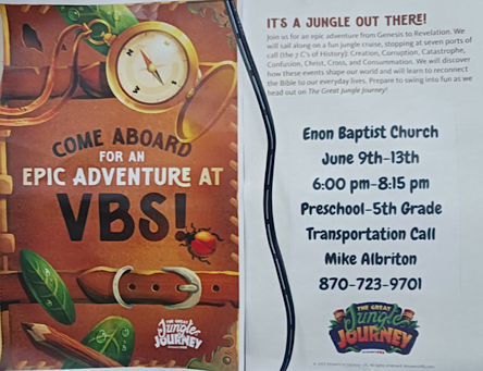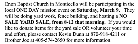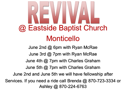 Sonny Tucker retired director of Arkansas Baptist State Convention will be in revival October 20-23 at Enon Baptist Church on Highway 35 East.