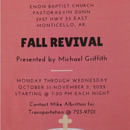To have your church’s events included, email them to joe@MonticelloLive.com or text them to 870-367-0000.
