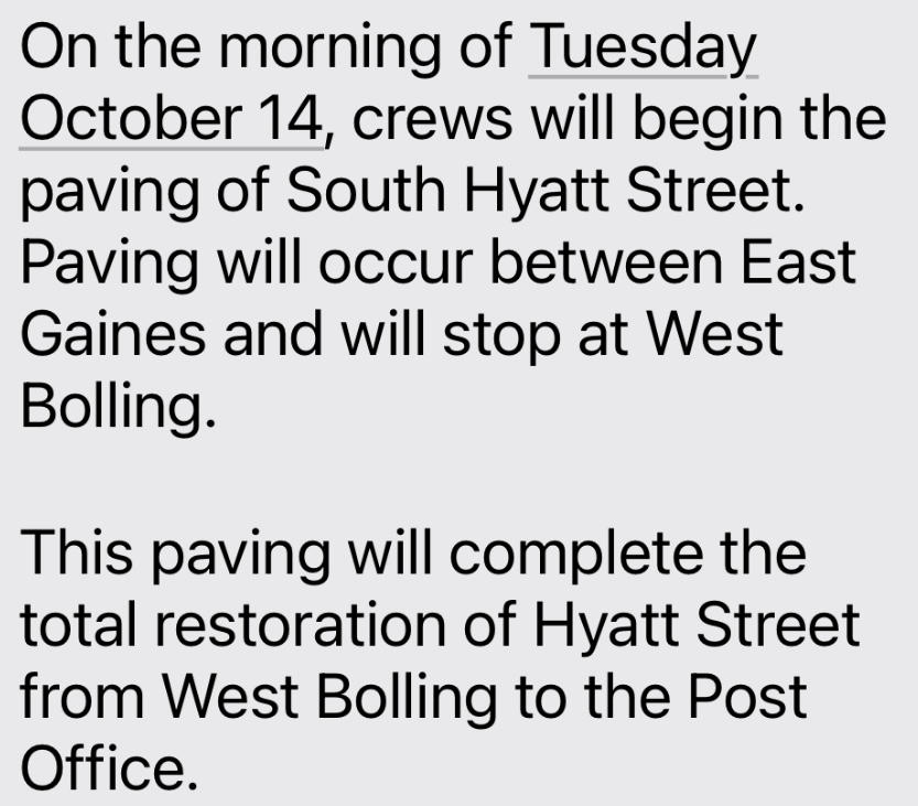 Posted in City , Site | Comments Off on Hyatt Street Paving Completed