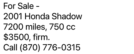Thank you in advance, If you know of anything, I can be contacted at 870-723-1108.