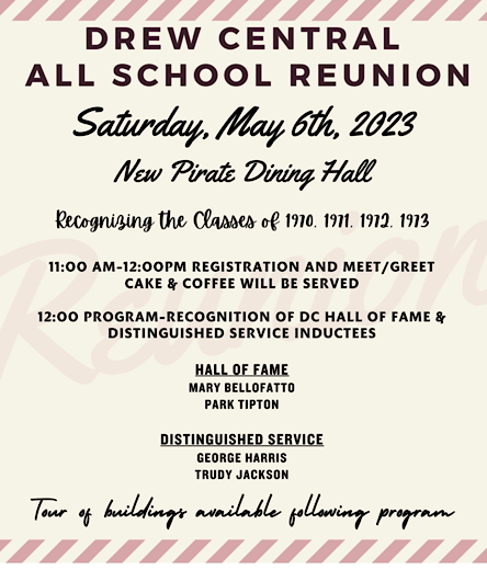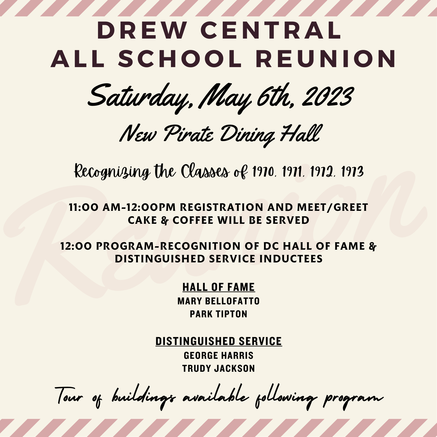 Posted in Drew Central News | Comments Off on DREW CENTRAL ALL SCHOOL REUNION, SATURDAY, MAY 6