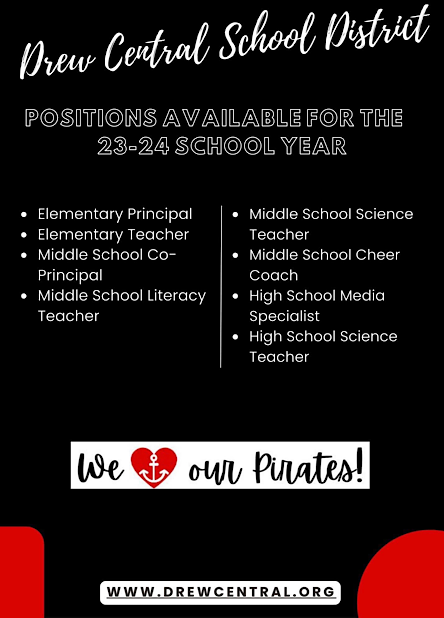 Posted in Drew Central News | Comments Off on DC Career Opportunities