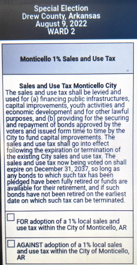 After Tuesday night’s election, Joe Burgess of MonticelloLive presented a freedom of information notice to the county election commission, specifically asking for details of the technical issues with Tuesday morning’s voting system problems with the one cent city sales tax election. (more…)