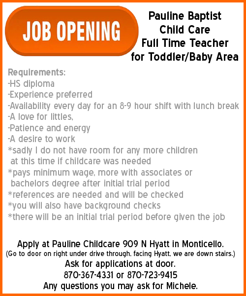 Posted in Business Center Ad, Employment | Comments Off on Be a Monticello Bus Driver!!