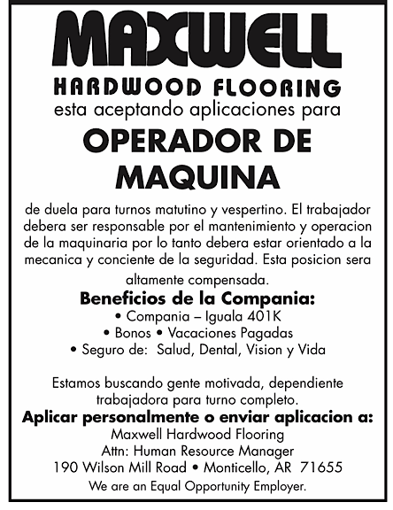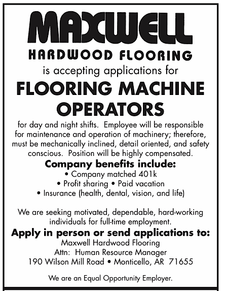 Posted in Business Center Ad, Employment | Comments Off on MAXWELL HARDWOOD FLOORING Seeking Office Receptionist / Office Assistant