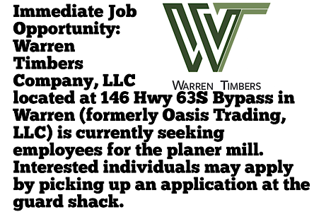 Posted in Business Center Ad, Employment | Comments Off on INTERFOR, “WE’RE HIRING!”