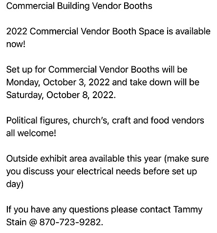 Posted in Fair | Comments Off on Drew County Fair Commercial Building Vendor Booths