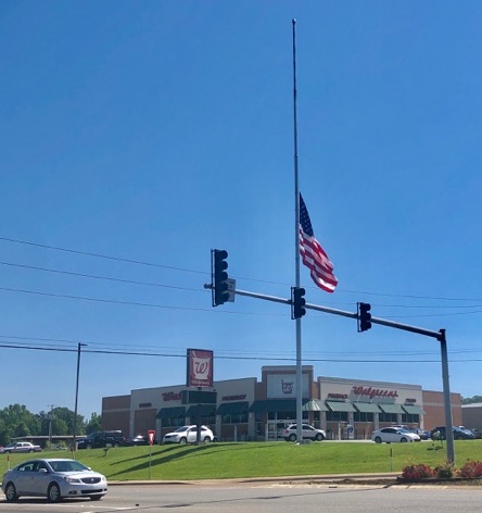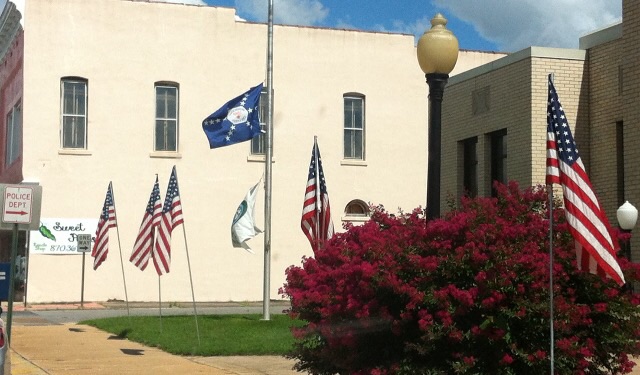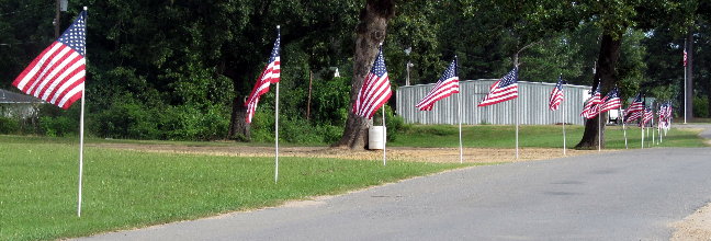 The flags, usually 4 at a time, are purchased with donations made by Commercial Bank, Union Bank, Simmons Bank, Parkway Bank, and Maxwell Hardwood Flooring.