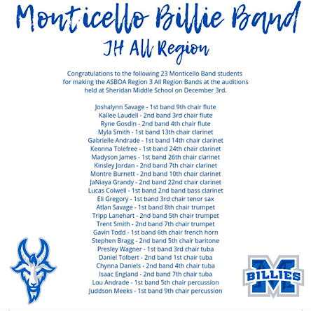 CONGRATULATIONS to MMS, MJHS and MHS 2023 All-Region Choir Students!!!