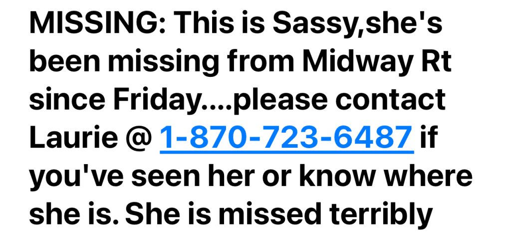 Posted in Pets, Site | Comments Off on Lost Pet, Midway Route