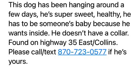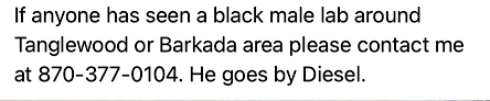 Simply send a photo, a contact number, and the area where your pet was last seen, to joe@MonticelloLive.com or text 870-367-0000.