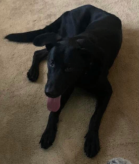 BELLA (LAB) does not have a collar on, but LADY (GWH) has a collar with Jacobs number!
