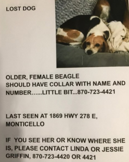 This is the latest of many lost pets in Drew County, that have found their way home, after having their photo placed on MonticelloLive.com.