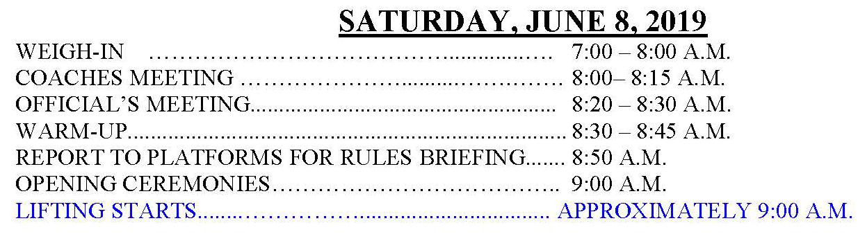 The AHSPLA State Powerlifting Championship will be held at the Monticello High School Gym (Dan Coston Field House) on Saturday, June 8, 2019.