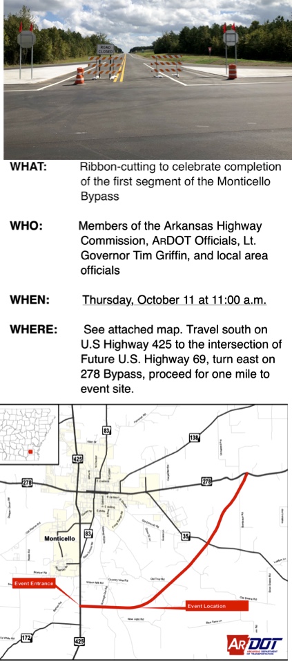 Posted in City, County, State, Video | Comments Off on ARDOT Tour & Ribbon- Cutting of I-69 278 Bypass – Videos