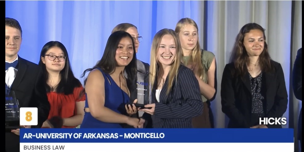Kaitlyn Wilson, a junior nursing student at the University of Arkansas at Monticello (UAM), recently received the DAISY Nursing Student Award from the Arkansas Nurses Association (ARNA). This award, which was presented to Wilson at the ARNA 2024 Gala and DAISY Awards in Little Rock, Arkansas, recognizes her excellent compassion, care and advocacy for patients and their families as a student in the field of nursing.