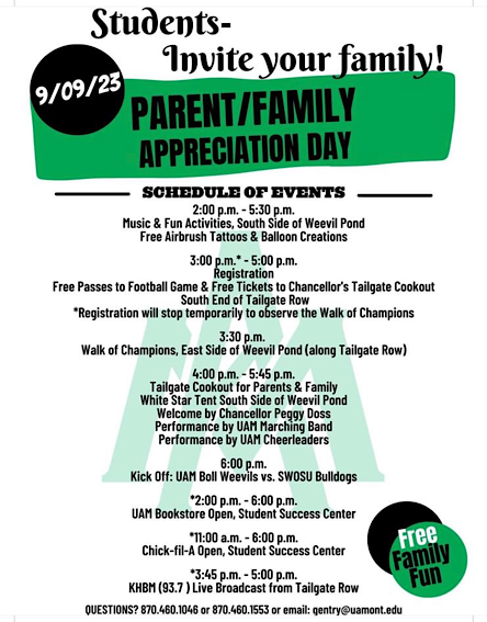 The University of Arkansas at Monticello (UAM) Office of Admissions will host Weevil Welcome: College Preview Day on Monday, March 3, beginning at 9 a.m. Registration will be held in the Gibson University Center on UAM’s Monticello campus. Check-in will begin at 8:30 a.m., and the program will run until noon.