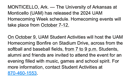 Posted in UAM News | Comments Off on UAM Celebrates 2024 Homecoming Week