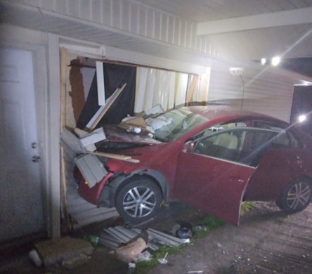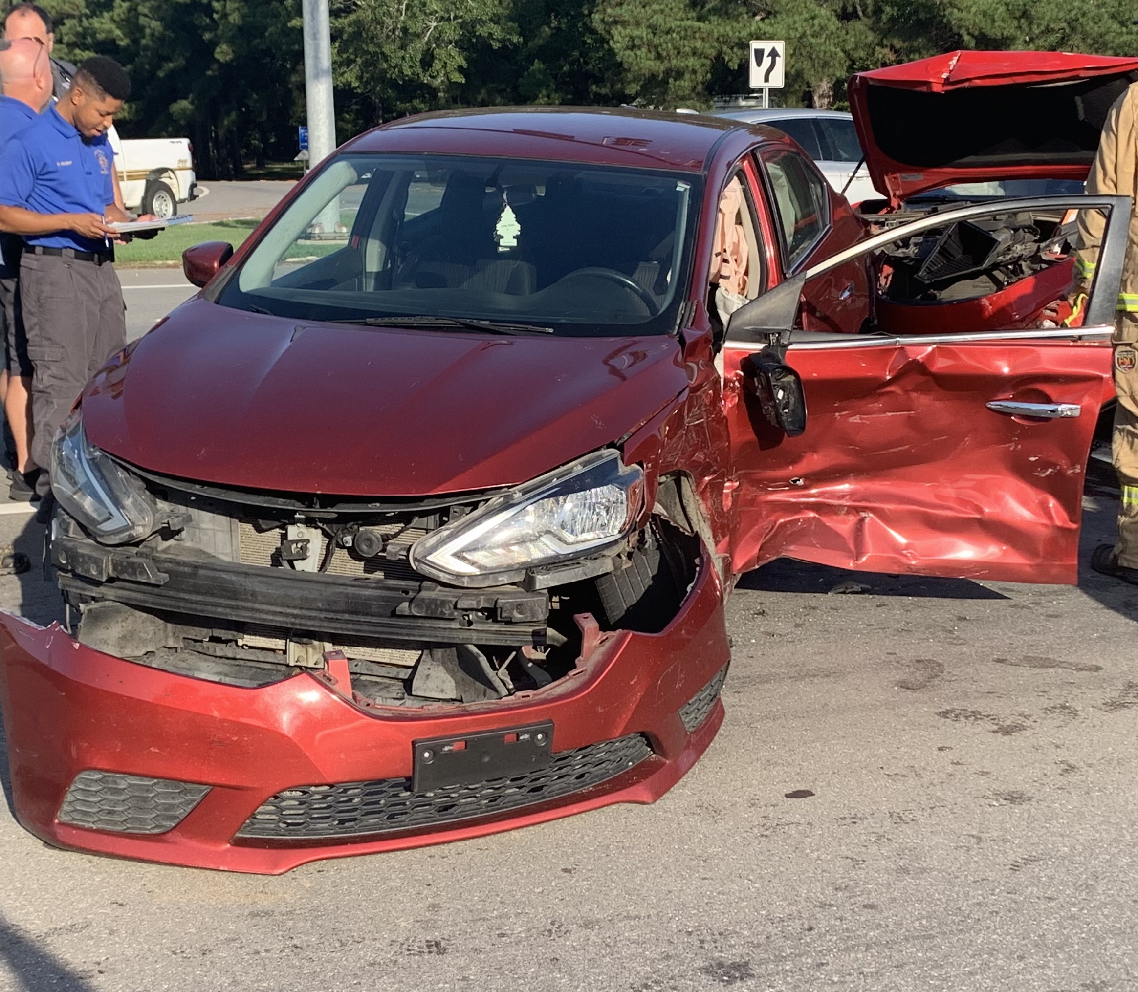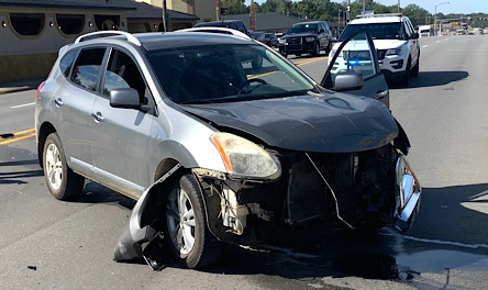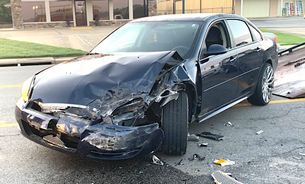 Between 9-10 PM, Sunday night, the driver of this Ford sedan told bystanders that the accelerator stuck, causing the vehicle to hit a parked car in Wendy’s, then travel across Highway 425 and come to a stop between Bartons and ATT.