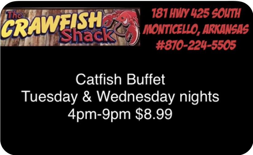 Catfish Buffet, Tuesday Wednesday Night, at Crawfish Shack
