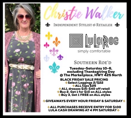 Christie with LuLaRoe Southern Roe’d will be at The Marketplace, Now-Saturday