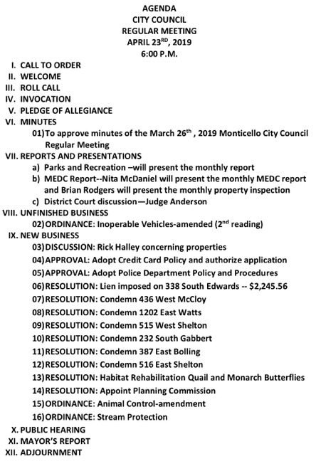 City Council Agenda for Tonight