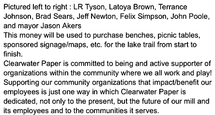 Clearwater Paper Donates $25,000 to Lake Bike Trail