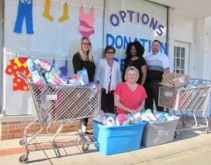The sales team assembled 90 ladies’ hygiene bags and 40 kids’ activity sets to provide to the women and children using Options’ emergency shelter.