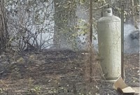 The fire spread from the yard, into the woods, to near a camper trailer, and even had pine straw on top of a butane tank burning.