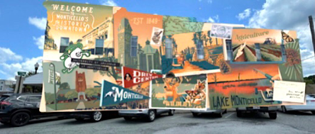 November 18th, 2021 byThe mural’s design depicts 8-9 postcard-style images that encompass some of the things that make Monticello proud.