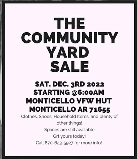 COMMUNITY YARD SALE; Saturday, DEC. 3RD