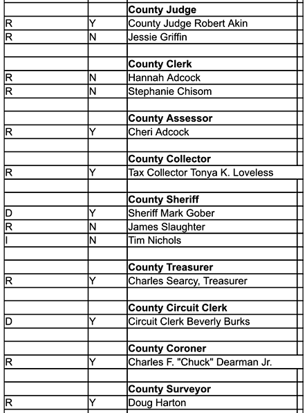 County Judge, Sheriff & Other Courthouse Official Filings for Election
