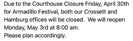 Courthouse Closed, Friday.