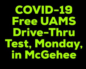 COVID-19 Free UAMS Drive-Thru Test, 10am-2pm, TODAY, in McGehee