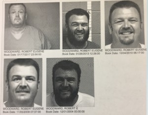 Woodward has a beard and a cropped hair cut, similar to the 2013 booking photo. His beard has started to grey. The screen grab of the surveillance video shows his current build.