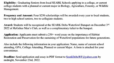 Delta Waterfowl: SEARK Chapter Annual Scholarship Application