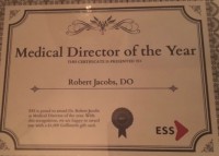 Robert Jacobs, D.O. was selected among 35 medical directors as the Medical Director of the Year by Emergency Staffing Solutions.