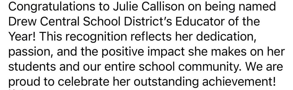 Drew Central Schools Teacher of the Year
