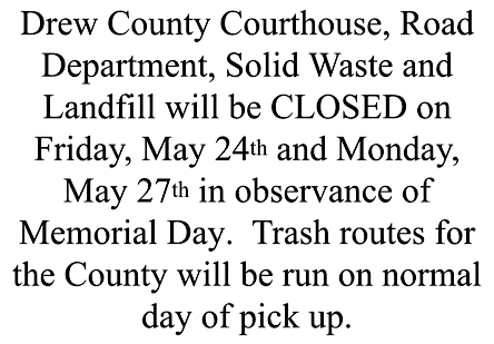 Drew County Memorial Day Schedule